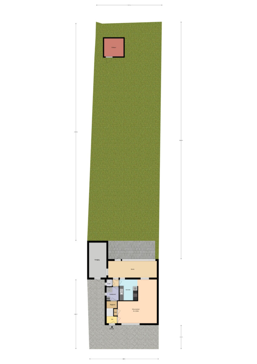 – Woonoppervlakte woning van 88 m2, waarbij de aanbouw (serre) van ca 18 m2 ivm regels van de meetinstructie niet is meegeteld. Het totaal zou dus uitkomen op ca 106 m2.